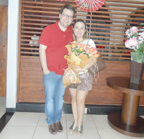 Feliz comemoração de aniversário de casamento de Hugo e esposa.