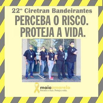 A 22ª Ciretran, de Bandeirantes, está participando da campanha Maio Amarelo, lançado no início do mês em todo o país. No Paraná, o Detran/PR deu início, na quinta-feira (14) passada, ao cronograma de lives que serão realizadas para a campanha 2020. Devido a pandemia do COVID-19, o movimento decidiu realizar as ações somente por meio virtual. O tema deste ano é ‘Perceba o risco. Proteja a vida!’.