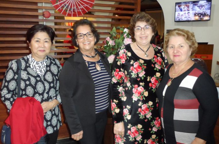 Amigas se reúnem e prestigiam a culinária oriental.