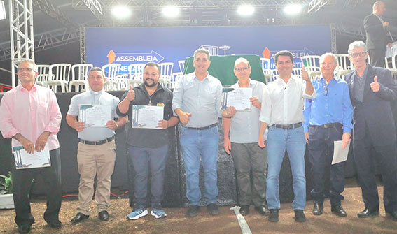 Diante da ampla vocação do município para a agricultura, com protagonismo na produção de culturas como uva fina de mesa e alfafa, Anibelli Neto (MDB) tratou dos desafios impostos pelo governo dos Estados Unidos à agricultura brasileira, com a imposição de tarifas a produtos importados para a potência norte-americana. “Esse é o momento da união, de achar outros mercados e valorizar os produtos brasileiros, para [a agropecuária] continuar levando o Brasil e o Paraná nas costas”, ressaltou.