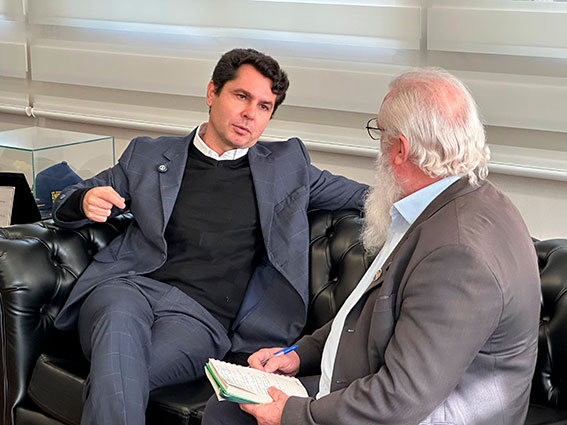 O diretor do Jornal Novo Tempo de Santa Isabel do Oeste, Sérgio Jonikaites, que também é associado da Adjori/PR, entrevistou o Presidente da Assembleia Legislativa do Paraná, deputado Alexandre Curi (PSD), que assumiu o cargo em fevereiro deste ano. Em seu gabinete, Curi, respondeu há vários questionamentos, abordando diversos temas. Descontraído, o Presidente destacou a importante parceria com a Adjori/PR, que vem de longa data.