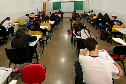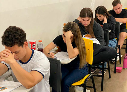 Os alunos da 3ª série do Ensino Médio do Colégio Ecel de Bandeirantes participaram, na manhã desta terça-feira (23), do simulado do ENEM, uma preparação para a prova oficial que será realizada nos dias 9 e 16 de novembro, com aplicação de 180 questões e mais redação. Os estudantes do colégio se preparam durante o ano letivo para participar deste simulado, que os ajuda, inclusive, a organizar o tempo para a prova oficial.