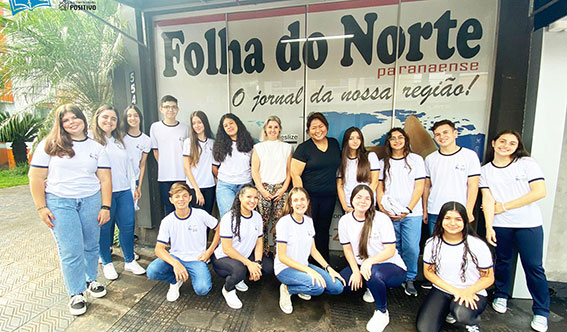A proposta da visita foi articulada pela professora de Língua Portuguesa, Rithielle Castellani, que está trabalhando o conteúdo do gênero textual notícia em sala de aula, através do material didático do Sistema Positivo de Ensino (SPI), decodificando a estrutura da linguagem e refletindo sobre as diferenças de estruturas textuais no jornal (notícia, reportagem, crônica, editorial, charge, entre outros). Durante as explanações, a jornalista – que também é sócia – proprietária do veículo de imprensa, detalhou as áreas de ação da produção da informação, desde a reunião de pauta, coleta de dados, fotojornalismo, diagramação (layout), envio ao parque gráfico, impressão e distribuição.