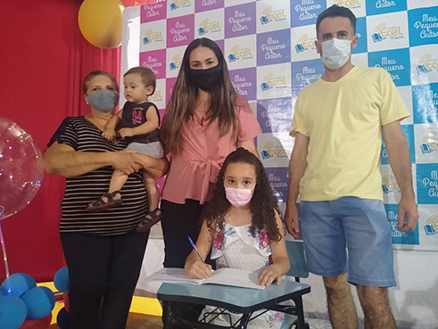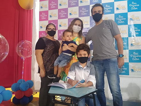 Desde a Educação Infantil até o Ensino Médio, ações de mobilização para a literatura são contempladas. Contação de Histórias, produção de gêneros textuais diversos, Clube do Livro, leitura coletiva bimestral de bibliografias que contemplam os vestibulares. São várias as ações privilegiadas neste aspecto, durante toda a vivência educativa do aluno na escola. Na quarta-feira (01) passada aconteceu a ‘Noite de Autógrafos’, desenvolvido pelos alunos do 3º ano do Ensino Fundamental I, sob orientação da professora Maria Lucineia Gonçalves de Souza. Ela já desenvolve este projeto especial há vários anos.