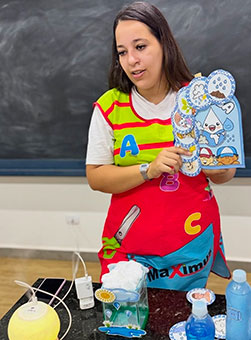 Para facilitar a compreensão do fenômeno natural, a professora Kelly demonstrou como o ciclo da água ocorre continuamente no meio ambiente. Os alunos descobriram que o calor do sol faz a água evaporar, dando origem às nuvens que, ao ficarem carregadas, devolvem o líquido à terra sob a forma de chuva.