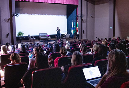 A mediação da mesa ficou a cargo do professor mestre Tiago Silvio Dedoné, coordenador pedagógico da Secretaria Municipal de Educação, que destacou que o Simpósio foi resultado direto dos dois ciclos de Formação Continuada ofertados ao longo do ano pela Secretaria – um voltado aos professores e outro especificamente à formação dos gestores educacionais. Os módulos de formação aconteceram durante todo o ano, debatendo temas, como: PEI – Inclusão e Diversidade; Recomposição de Aprendizagem: estratégias, avaliação diagnóstica sequenciada e construção do PRA; Literatura Infanto-Juvenil: Práticas de leitura, escrita e interpretação – novas tendências; Metodologias Ativas na Aprendizagem, Cultura Digital, Educomunicação e Desenvolvimento de Mentalidades; Educação das Relações Étnico-raciais; Consciência Fonológica: Competências Pré-Leitoras; Educação para a Sustentabilidade e Letramento Ambiental; Avaliação, Feedback de Ensino e BNCC, entre outros.