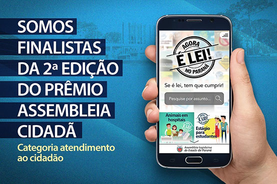 Mais informações sobre o aplicativo ‘Agora é Lei no Paraná’ podem ser encontradas no site https://www.assembleia.pr.leg.br/agoraelei. O ‘Agora é Lei no Paraná’ pode ser baixado gratuitamente na loja de aplicativos do seu celular.