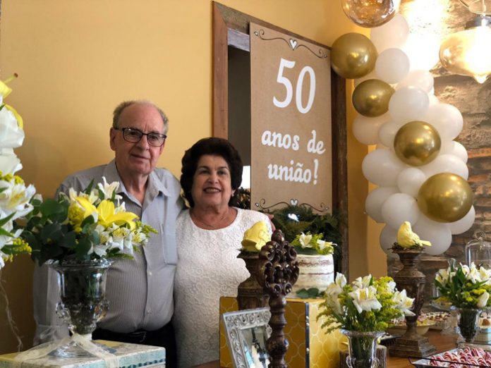 Foi com alegria e emoção que o casal Maria da Glória Pereira Filgueiras e Gumercindo Filgueiras reuniu familiares e amigos para comemoração das Bodas de Ouro. A festa pelos 50 anos de feliz união aconteceu no domingo (14) passado no Restaurante Hebron. Parabéns ao casal, saúde e que venham outras bodas!