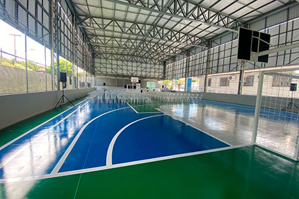ESTRUTURA E OBRAS – A quadra poliesportiva coberta tem 651 metros quadrados e passa a integrar a estrutura da unidade, que conta com área construída total de aproximadamente 2,1 mil metros quadrados. O colégio atende cerca de 400 estudantes de ensino Fundamental e Médio, incluindo turmas em período integral e curso técnico em período integral.
