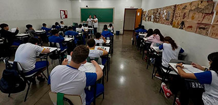 No Ensino Médio, o simulado é realizado em duas fases. A primeira etapa ocorreu também na última semana, enquanto a próxima fase será aplicada na semana seguinte, dando continuidade ao processo avaliativo e formativo dos estudantes.