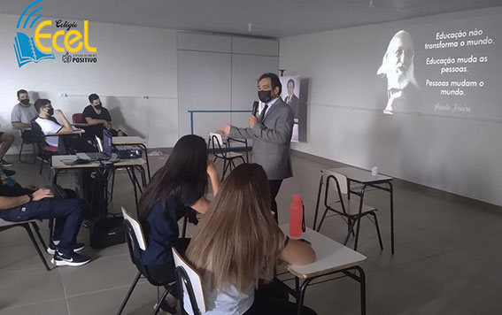 Foram momentos muito prazerosos, de reflexão sobre direitos e deveres, alteridade, justiça social, respeito ao próximo, reflexões sobre protagonismo e solidariedade. O mantenedor e proprietário do Colégio ECEL, dr. José Carlos Dias Neto, abriu o evento, agradecendo a gentileza da disponibilização do Dr. Castro em dialogar com os nossos alunos e equipe sobre temas tão fundamentais para o desenvolvimento humano. A coordenadora geral do Ensino Médio, professora Angela Balestero, também enfatizou a importância dos temas, durante sua explanação de abertura. Parte dos alunos estiveram acompanhando presencialmente e, outra parte, no sistema remoto.