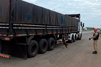 Uma equipe do Batalhão de Polícia Rodoviária (BPRv) da Polícia Militar do Paraná (PMPR), com o apoio de cães, interceptou uma carreta com placas do Paraguai que transportava uma 1 tonelada de maconha. A abordagem ocorreu no posto rodoviário de Rolândia e resultou na prisão em flagrante do motorista.