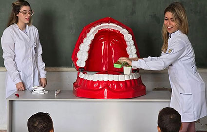 Para a estudante de odontologia, Laís Fernanda Almeida, fazer parte do projeto proporcionou não apenas aprendizados acadêmicos, mas também uma vivência profunda do atendimento humanizado. “O projeto atua na base, ensinando crianças a cuidarem de sua saúde bucal e, assim, construírem um futuro mais saudável e com mais qualidade de vida. É possível acompanhar de perto a evolução de cada criança, percebendo mudanças significativas em seus hábitos e na prevenção de doenças”, destaca e comenta sobre uma das atividades marcantes que fizeram com o projeto, confeccionando porta-escovas, para que cada kit de higiene ficasse disponível dentro da sala de aula. “O retorno foi muito positivo, após o recreio, todas as crianças iam espontaneamente pegar suas escovas para higienizar os dentinhos, demonstrando que o aprendizado estava sendo colocado em prática. Essa experiência reforçou em mim a certeza de que a educação em saúde bucal é capaz de transformar realidades, cultivar hábitos saudáveis e gerar impactos duradouros na vida das pessoas”, contou.