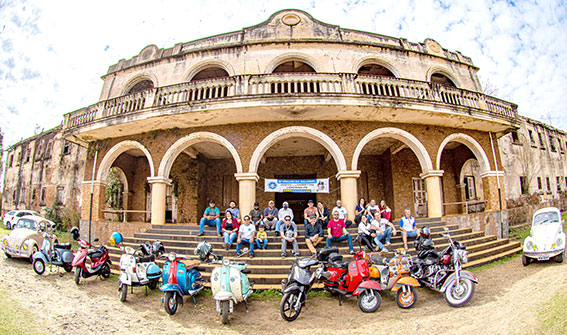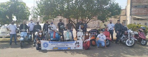 No último dia 15, grupo ‘Confraria Vespas e Lambretas de Londrina e Região’ esteve em Bandeirantes conhecendo o Município e alguns pontos turísticos como Santuário de São Miguel Arcanjo, Morro dos Anjos, Vinícola La Dorni, Fazenda Yara e dentre outras localidades. Entre as paradas, os participantes da confraria se concentraram em frente ao antigo estágio Comendador Luiz Meneghel (Campo do União) e as pessoas que por ali passaram puderam compartilhar e tirar fotos com as raras scooters.