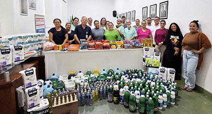 A recente entrega e encerramento da campanha aconteceu na sala de reuniões da Santa Casa e contou com a presença do provedor Roberto Castanho, diretor administrativo Elton Oliveira, diretores e demais colaboradores da instituição. A doação de produtos de limpeza e de higiene é essencial para manter a segurança do ambiente hospitalar, garantindo o bem-estar dos pacientes e profissionais. “Cada item doado faz uma grande diferença. Nosso agradecimento a comunidade de Bandeirantes, a todas as pessoas envolvidas que participam, ajudam, colaboram, e por mais simples que seja, faz uma diferença enorme na vida das pessoas que são atendidas e que dão atendimento na Santa Casa”, comentou Ana Paula. Parabéns!