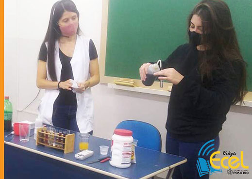 Nesta última semana, durante a aula de química, sob a coordenação da Professora Leidy Cristina, que é mestre em Genética e Biologia Molecular, os alunos do segundo ano do Ensino Médio, não apenas debateram conteúdos, como, também, exploraram os processos práticos. Através dessa estratégia de ensino é possível ao aluno formar seu próprio critério científico, onde este fará uso de seus conhecimentos teóricos e intuição para chegar a uma compreensão das experiências, ou seja, reforçar a aprendizagem.