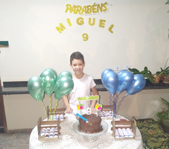 O esperto e simpático Miguel teve uma feliz surpresa pela comemoração do seu aniversário de 9 anos. Mesmo com as restrições neste período de pandemia, os pais Chaiane e Fábio De Sordi, e as irmãs Clarice e Melissa, e demais familiares, não deixaram a prevenção de lado e ainda assim demonstraram todo amor e carinho pela data especial do aniversariante!