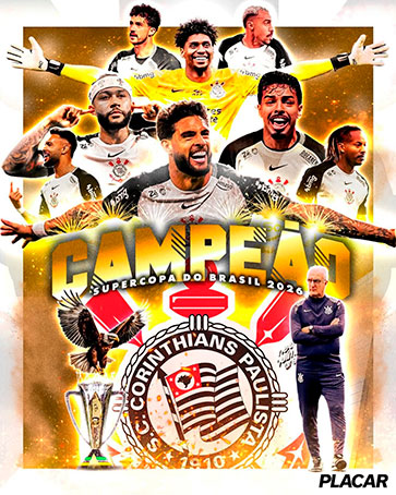 – O Corinthians enfiou 2 no Mengão (gols de Gabriel Paulista e Yuri Alberto) e levou a Supercopa do Brasil neste domingo. O Dorival Jr. é “o cara”. O homem entende de jogo único, de ida e volta e por aí vai. Colocou o poderoso Mengão no bolso. Quinta-feira, dia 5, às 20h30, o Timão pega o Capivariano pelo Paulistão na Neo Química Arena.