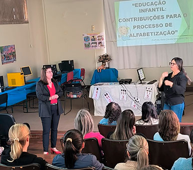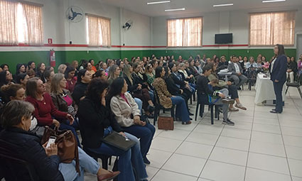 Já no período da tarde, a formação foi voltada para os professores da Educação Infantil e Pedagogas, com o tema: “Educação Infantil: contribuições para o processo de formação”, ministrado pela Profª Mestra Maria Cláudia Selleti – coordenadora pedagógica na Secretaria, que debateu sobre estratégias e reflexões fundamentais para qualificar, ainda mais, o trabalho com a primeira infância, respeitando as particularidades desta fase e favorecendo a transição para a alfabetização.
