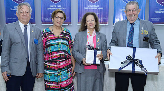 Os rotarianos de Bandeirantes também comemoraram o encerramento da campanha ‘Cartela Solidária’, realizada em parceria com os clubes de Santa Mariana e Cornélio Procópio. Os responsáveis prestaram contas da ação e homenagearam Beto Polo, do Rotary Club de Andirá e proprietário da Transportadora Matão, pelo translado de todo o material recolhido até seu destino final para reciclagem. Irma Meneghel Paiva explicou os detalhes da ação e relatou que as coletas resultaram em 2.300 quilos de “blisters” (cartelas vazias de remédio), que renderam o valor de R$ 2.300 mil e serão convertidos em cadeiras de rodas para pessoas que necessitam, indicadas pelos três clubes participantes. Ela destacou que o resultado mais expressivo da ação foi a retirada de todo esse volume de material plástico do meio ambiente, atendendo às orientações do Rotary Internacional.
