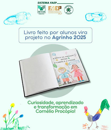 A curiosidade de um aluno da Escola Municipal Ângelo Mazzarotto, em Cornélio Procópio, no Norte Pioneiro, inspirou um projeto que une criatividade, aprendizado e transformação social. A partir da pergunta “De onde vem a ração dos cachorros?”, nasceu o livro “A festa da amizade entre o Campo e a Cidade”, escrito pela professora Andréia Godoy e ilustrado pelos estudantes, como parte das atividades do Programa Agrinho 2025, promovido pelo Sistema FAEP.