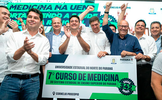 “Estamos falando de um aporte de R$ 85 milhões ao longo dos seis primeiros anos do curso. Nós organizamos a casa, as universidades, e agora chegamos ao momento de fazer esse investimento e permitir que a UENP dê um salto de qualidade. A partir do momento em que uma universidade passa a ter um curso de Medicina, ela muda de patamar e passa a integrar o grupo das grandes universidades do Brasil”, acrescentou.