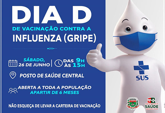 Acontece hoje, sábado (26), das 09h às 15h, o Dia D de Vacinação contra a Influenza promovido pela Prefeitura de Bandeirantes através da Secretaria de Saúde. Aberta a toda a população, com idade a partir de 6 meses, o público poderá procurar o Posto Central na data de hoje. O secretário de Saúde, Wanderson de Oliveira, ressaltou que é para não esquecer de levar a carteira de vacinação e aqueles que tomaram a dose contra a Covid-19 devem verificar se passou o prazo de 15 dias da imunização.