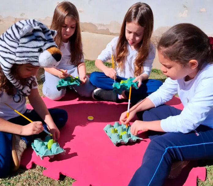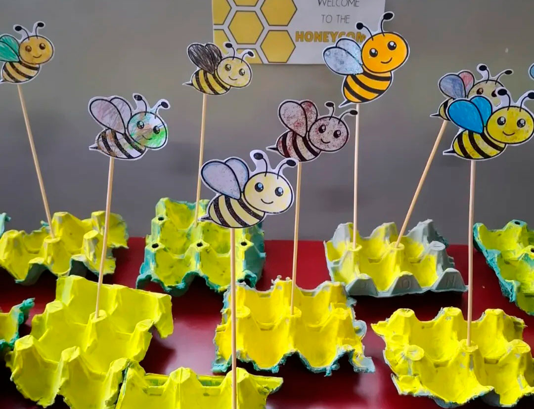A iniciativa consistiu na criação de favos de mel e abelhinhas utilizando caixas de ovos. Essa atividade, aparentemente simples, é um excelente exemplo de como a teoria e a prática se complementam no processo de aprendizagem infantil. Na teoria, a proposta despertou a curiosidade das crianças sobre os insetos e a natureza. Através da confecção, os pequenos puderam aprender sobre a estrutura dos favos, as características das abelhas e, de forma mais ampla, sobre a importância desses polinizadores para o meio ambiente. Conceitos como a polinização e o equilíbrio ecológico, mesmo que em um nível inicial, foram introduzidos de maneira tangível e significativa.