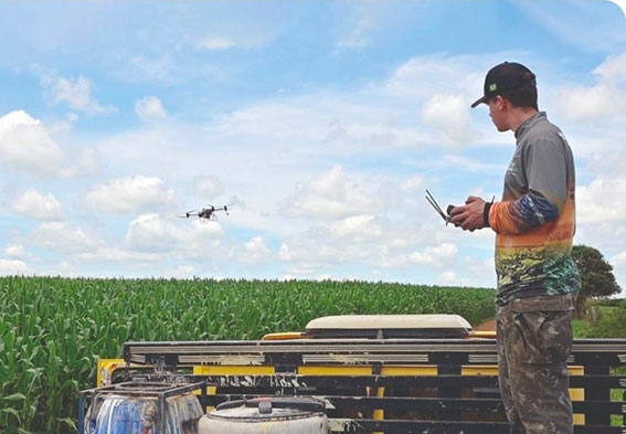Em Castro, nos Campos Gerais, a produtora Kelly Alves Taborda é pioneira no uso de drones de pulverização na produção agrícola na região. Ela utiliza a tecnologia em sua propriedade há quase seis anos. A capacitação ocorreu por meio do curso de operação de drones oferecido pelo Sistema FAEP, que o marido João Carlos Taborda e o filho Lucas Gabriel Petrech também realizaram.