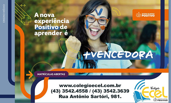 O Colégio ECEL ainda encontra-se com as matrículas abertas. Venha conhecer a instituição que há 32 anos atua promovendo educação transformadora, com infraestrutura ampla, professores de alto nível, material didático do Sistema Positivo de Ensino (um dos melhores do Brasil), carga horária ampliada, projetos pedagógicos diferenciados em todos os níveis de ensino (Infantil, Fundamental I e II, Ensino Médio), Ensino Bilíngue (em parceria com a Universidade de Cambridge, através do PES Language Program), conferindo aos que estão na fase final do Ensino Fundamental II, a oportunidade de fazerem a prova de proficiência em Inglês, diretamente com professores representantes da Universidade. Eles recebem o título internacional de fluente em Inglês. É uma escola de línguas, dentro do próprio Colégio.