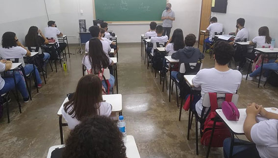 Alunos de todos os níveis da Educação Básica (Infantil, Fundamental e Médio) do Colégio ECEL retornaram às aulas presenciais na última semana, bastante motivados, após quase dois anos de formato remoto -e, posteriormente, híbrido -, em razão da pandemia do Covid-19. O retorno presencial, estipulado em atenção as normativas estabelecidas pelos órgãos de saúde pública, também vem ao encontro do protocolo de segurança estipulado pelo próprio Grupo ECEL, que possui dois Colégios (em Bandeirantes e em Uraí).