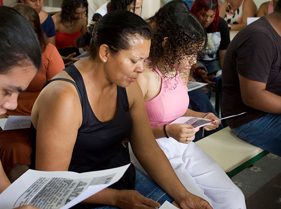 No último dia 4, foi realizada a “Oficina Antirracista em Três Atos”, idealizada e orientada pelo professor e pesquisador Andrei Domingos Fonseca, em parceria com as turmas diurnas do Centro de Educação Básica para Jovens e Adultos (CEEBJA) Professora Geni Sampaio Lemos, nas instalações da Escola Estadual Imaculada Conceição, em Jacarezinho. Ao todo, a atividade contou com a participação de aproximadamente 50 pessoas, entre estudantes, professores e equipe pedagógica.