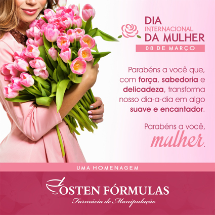 Para comemorar o Dia Internacional da Mulher (08 de Março) e o Mês da Mulher, a Osten Fórmulas lançou dois produtos exclusivos somente para elas. “Sim. São dois poderosos rejuvenescedores, uma dupla perfeita que combate o envelhecimento”, destacou a equipe de farmacêuticas.