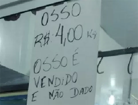 A triste realidade do Brasil atual: “osso é vendido e não dado”, conforme consta de cartaz afixado em açougue de Florianópolis/SC. Este é o retrato de um país mal dirigido e que envergonha a todos.