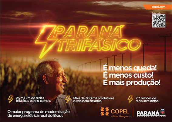 A substituição das antigas estruturas monofásicas por trifásicas está proporcionando energia de maior qualidade à população rural, contribuindo para o desenvolvimento do setor agroindustrial paranaense. Na prática, toda a espinha dorsal da rede de distribuição na área rural está sendo trifaseada, substituindo a tecnologia que marcou a primeira grande revolução elétrica no Interior, nos anos 1980. “O Paraná Trifásico é uma das principais iniciativas para garantir infraestrutura de qualidade ao setor produtivo do Estado. Esse investimento ajuda a garantir a segurança energética de que precisamos”, ressalta o governador Carlos Massa Ratinho Junior. “Nosso principal objetivo é que a população do campo possa contar com energia elétrica de qualidade e que os produtores tenham todo o apoio necessário para crescerem ainda mais”.