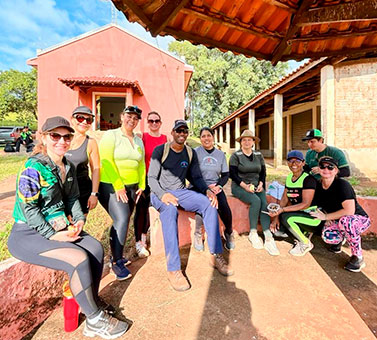Antecipando a saída, todos realizaram alongamento e aquecimento coletivo, e conferiram o “checklist” essencial para a caminhada que foram o uso de roupas leves, boné e óculos de sol, água (hidratação constante) e lanche leve (frutas, barras de cereal), protetor solar, papel higiênico e toalha, canivete para eventuais necessidades na trilha.