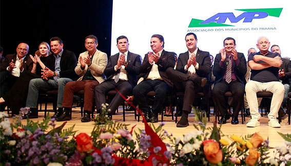 Durante solenidade, o governador Carlos Massa Ratinho Junior elogiou a gestão de Júnior Weiller, desejou sucesso à gestão do presidente Edimar, destacou todas as realizações do seu governo e defendeu um pacto pela Educação no Estado. “O Paraná tem investimentos de R$ 200 bilhões de empresas privadas. É o Estado que mais cresce, mais gera empregos e é o mais sustentável do Brasil. Mas temos desafios. Precisamos nos unir para melhorar a Educação ainda mais e também em torno dos consórcios municipais, que estão dando certo no Brasil todo, em todas as áreas. Vamos juntos fazer do Paraná um Estado cada vez mais desenvolvido e justo. Viva a AMP. Vivam os municípios do Paraná”, disse.