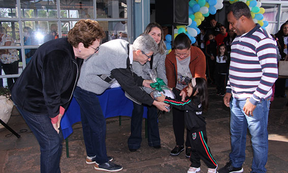 ENTREGA DE UNIFORMES – A ocasião também foi oportuna para que os alunos da rede municipal recebessem os uniformes escolares. Devido a um atraso burocrático, não foi possível fazer a entrega no início do ano. “É prazeroso entregar esses uniformes para os alunos e aos pais, que tanto esperaram pelo vestuário. Temos mais de três mil alunos na rede municipal que passam a ser beneficiados com os uniformes, e dessa forma os pais podem economizar com roupas. E outro benefício também é que todos os alunos ficam iguais, não há distinção entre eles, dando paridade e ainda segurança, já que estarão todos uniformizados”, enfatizou.