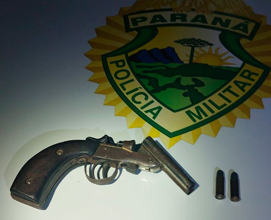 Os policiais localizaram o suspeito pelas características repassadas e realizaram a abordagem. Durante a revista pessoal, foi encontrada uma garrucha calibre .32 com duas munições intactas e sem numeração aparente.