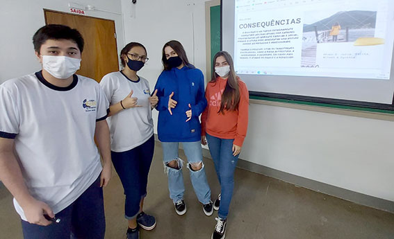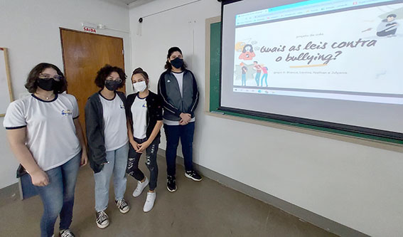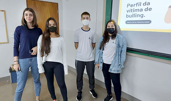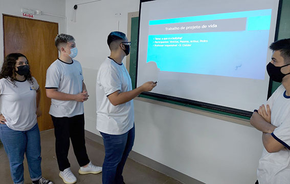 Na etapa final, eles foram divididos em duplas. Cada uma produziu um material de campanha contra o bullying, com imagens (artes ilustrativas e informacionais). Os resultados foram bastante afirmativos. “A implementação desta atividade foi muito produtiva, pois os alunos puderam refletir a respeito de um tema muito importante”, destacou o professor, complementando: “O fato dos alunos assumirem a responsabilidade de pesquisarem, de aprenderem sobre o tema e criarem os posts e campanhas para as redes sociais, contribui para o crescimento pessoal, o trabalho em grupo, a autorreflexão, compromisso, autonomia e empatia, que são atitudes fomentadas na disciplina de Projeto de Vida”.