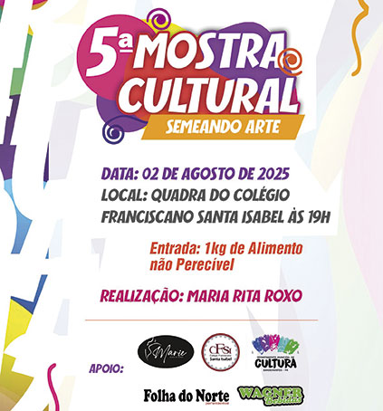 Unir cultura e solidariedade. Este é um dos objetivos da quinta edição da Mostra Cultural ‘Semeando Arte’, promovida pela Marie Studio de Dança, de Bandeirantes, que será realizada neste sábado, dia 02, a partir das 19h, na Quadra do Colégio Franciscano Santa Isabel. Para prestigiar o evento, basta levar 1kg de alimento não perecível. Todo produto arrecadado será destinado para uma entidade de assistência social.