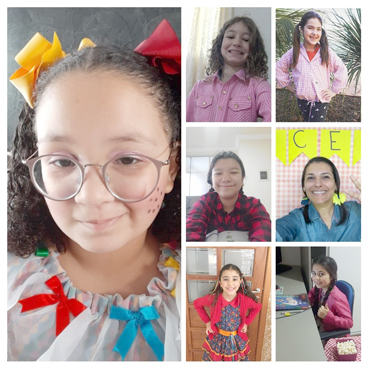 Com professores vestidos a caráter, muita música e fazendo brincadeiras típicas, as aulas estão sendo uma festa de integração. E os alunos e pais entraram na brincadeira e conseguiram reproduzir esse período de festejos dentro das próprias casas. Os professores que entram diariamente, ao vivo, para as aulas, estão entrando com cenários diferentes esta semana, animando bastante os alunos. Muitos fizeram mesas com comidas típicas, colocaram bandeirinhas e o arraiá. A atividade representou um momento diferente para os alunos durante o isolamento social.