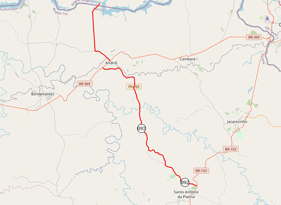 O Departamento de Estradas de Rodagem do Paraná (DER/PR) realizou a sessão de disputa da licitação para restaurar a PR-092 entre Santo Antônio da Platina e Andirá, passando por Barra do Jacaré, no Norte Pioneiro. O trecho tem 53,15 quilômetros de extensão, iniciando no entroncamento com a Rodovia Transbrasiliana (BR-153) e seguindo até a localidade de Porto Leopoldino, na divisa com São Paulo. O DER-Paraná é uma autarquia da Secretaria de Infraestrutura e Logística (SEIL).