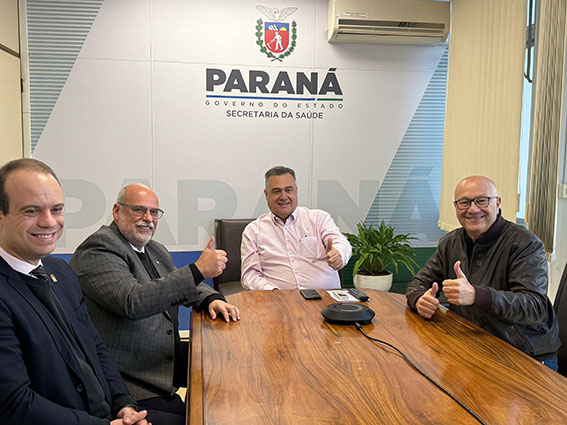 O deputado estadual Luiz Cláudio Romanelli confirmou nesta terça-feira (15), durante reunião com o secretário de Estado da Saúde, Beto Preto, o repasse de R$ 2 milhões para compra de equipamentos da Clínica de Fisioterapia da Universidade Estadual do Norte do Paraná (UENP) no campus de Jacarezinho. “Graças à parceria com a SESA e apoio do governador Ratinho Júnior, conseguimos garantir os equipamentos para a clínica, que teve sua estrutura viabilizada por meio de emenda parlamentar do nosso mandato”, destacou Romanelli. Participaram ainda do encontro, o reitor Fábio Neia e o diretor do campus de Jacarezinho, Luiz Fernando Kazmierczak. “Tratamos de detalhes finais para a inauguração da nova clínica que foi ampliada neste último ano.