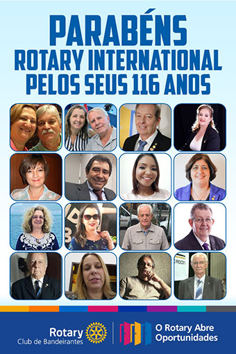 Em 23 de fevereiro, o Rotary Internacional comemorou seus 116 ANOS DE FUNDAÇÃO. É uma data na qual, nas palavras do Presidente do Rotary Club de Bandeirantes, Armando Meneghel Paiva, celebra-se o trabalho de pessoas no mundo todo que fazem projetos que ampliam o impacto local e global. “O Rotary é uma organização de líderes de negócios e profissionais, unidos no mundo inteiro, que prestam serviços humanitários, fomentam um elevado padrão de ética em todas as profissões e ajudam a estabelecer a paz e a boa vontade no mundo”, diz ele.
