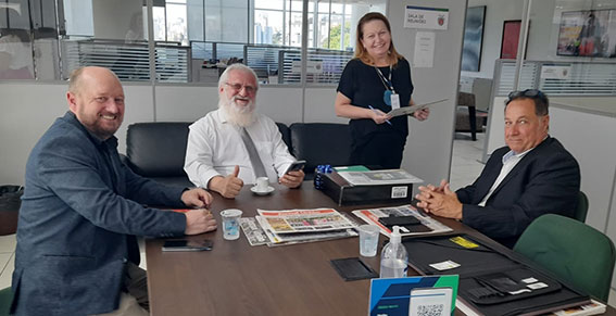 Na quarta-feira (25) passada, o presidente da Associação dos Jornais do Interior do Estado do Paraná (Adjori), Cidenei Cristian Allebrandt (Alemão do Jornal); o vice-presidente, Sergio Jonikaites; e o tesoureiro, Elizio Siqueira, se reuniram na capital do Estado com o secretário de Estado da Comunicação, Cleber Mata, com o diretor de Marketing, Willian dos Santos Silva e a chefe de gabinete, Keia Cristina. Em pauta, a sequência da parceria do governo estadual com a entidade que sempre levou de forma séria e ágil as informações para todos os municípios paranaenses.