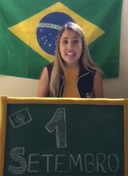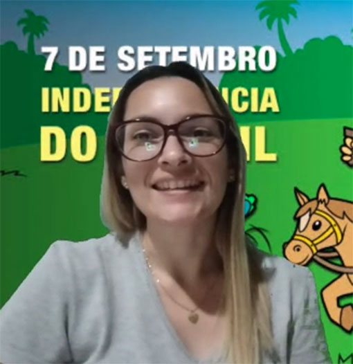Nesta semana, mais uma atividade programada no Calendário Escolar está sendo desenvolvida, com sucesso: a Semana da Pátria. A Diretora Geral, Professora Joelma Almeida, destacou a importância desta mobilização e planejamento: “Orientamos às professores que cantem com os alunos no decorrer da semana o Hino Nacional e o Hino da Independência. Para as turmas do 2º ano do Ensino Fundamental ao Ensino Médio, que tem aula online todos os dias, irão cantar diariamente. E as demais turmas de Educação Infantil  e primeiro ano as professoras irão desenvolver atividades alusivas a Pátria. Como, por exemplo, assistirem aula com a camiseta das cores do Brasil”, explicou a Diretora.