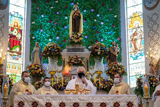 Durante a semana, fiéis católicos participaram de missa e também de novena, na qual houve a participação do bispo dom Antônio Braz Benevente, reitor do Santuário padre Rodolfo Chagas Pinho e demais párocos. Devido à chuva de ontem a carreata programada pelas ruas da cidade foi cancelada e a Missa Campal para a reinauguração do memorial de Santa Terezinha (localizada próxima ao Corpo de Bombeiros) foi transferida para as dependências do Santuário.