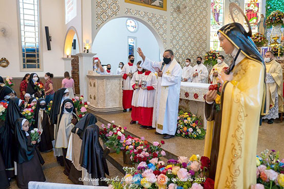 Dia 01 de outubro, a Igreja Católica celebra uma de suas santas mais populares: Santa Terezinha do Menino Jesus. A santa carmelita, mesmo com sua vida contemplativa, tornou-se a padroeira das missões e doutora da Igreja. O mais profundo desejo de seu coração era de ter sido missionária. Ela viveu somente 24 anos. Mas, deixou um grande legado de amor para a Igreja, o qual se tornou muito conhecido com o passar do tempo. Sua vida se passou na humildade, simplicidade e confiança plena em Deus. Santa Terezinha tinha no amor a sua vocação: todos os gestos e sacrifícios, do menor ao maior, oferecia a Deus pela salvação das almas e na intenção da Igreja.