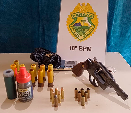 Com o indivíduo, a PM apreendeu um revólver Taurus, calibre .38, com seis munições intactas. Em uma bolsa, foram encontradas mais seis munições deflagradas do mesmo calibre e uma porção de maconha.
